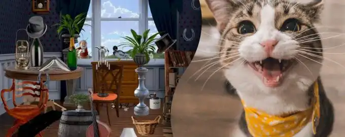 Na tomto detailním obrázku přeplněné místnosti se skrývají dvě kočky. První je poměrně snadná, ale druhá vyžaduje opravdu bystré oko a schopnost ignorovat