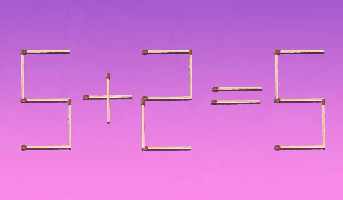 Vaším úkolem je opravit nesprávnou rovnost 5+2=5 přesunutím pouze jedné zápalky. Klíčem je podívat se na čísla nejen jako na hodnoty, ale jako na tvary, které lze změnit jedním malým pohybem.