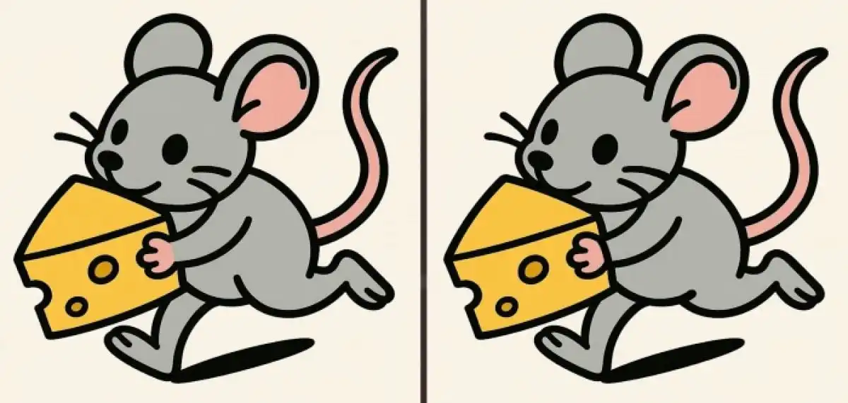 Dokážete najít tři rozdíly mezi dvěma obrázky myši a sýra? Tato klasická hádanka testuje vaši pozornost a rychlost. Klíčem je systematické prohledávání každé části obrázku, abyste nepropásli žádný detail.
