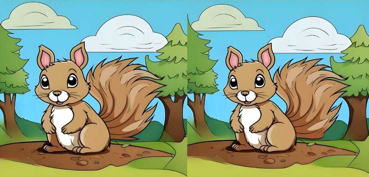Představte si, že jste editor v časopise pro děti a vaším úkolem je zkontrolovat dva obrázky, které se mají tisknout vedle sebe. Vydavatel tvrdí, že jsou identické, ale vy tušíte, že se v nich skrývají malé chyby. Na první pohled vypadají oba obrázky roztomilé veverky úplně stejně – stejný výraz, stejné pozadí. Ale pozor! Mezi nimi jsou ukryté tři rozdíly. Dokážete je všechny odhalit dříve, než vám uteče časový limit, řekněme, 25 sekund? Zkuste to nejdřív sami, než se podíváte na nápovědu.