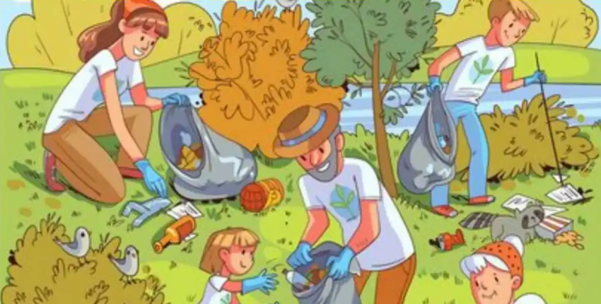 Představte si slunečný den v parku. Skupina lidí, dospělých i dětí, se rozhodla udělat dobrý skutek a uklidit pohozené odpadky. Scéna je plná pohybu a života – někdo sbírá plechovky, jiný dává odpadky do tašky, děti pomáhají. Mezi nimi pobíhají ptáci a zvědavě nakukuje mýval. Všechno vypadá tak obyčejně… ale není. V tomto ruchu se dokonale skryla želva. Vaším úkolem je ji najít za pouhých 7 sekund. Dokážete to? Zastavte čas a zkuste to!