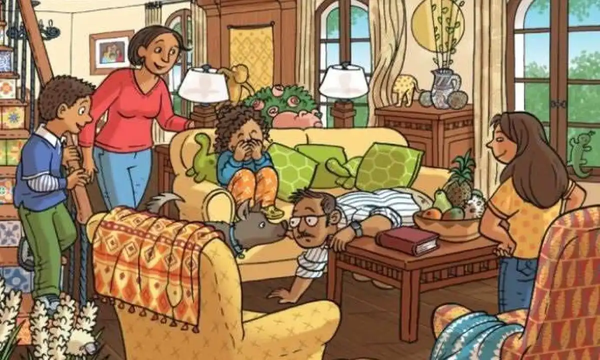 Na obrázku plném chaosu hledá zoufalá rodina dva ztracené předměty – kartáč a křoví. Časový limit je neúprosný: pouhých 22 sekund. Klíčem k úspěchu je systematické prohledávání a odolnost vůči optickému klamu, který vytváří rušivé pozadí.