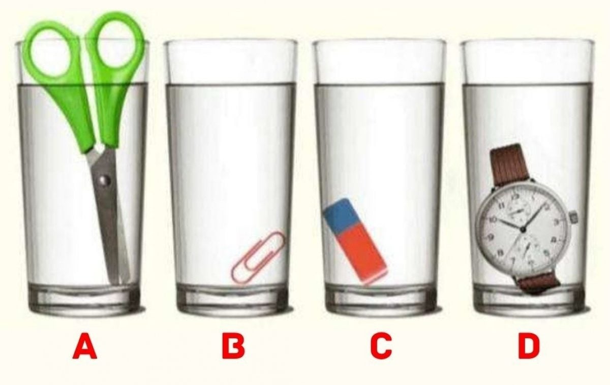 Podobné hádanky trénují kritické myšlení a schopnost ignorovat rušivé elementy. Zde by vás mohly zmást tvar předmětu nebo to, jak hluboko je ponořen. Důležité je soustředit se na podstatu.