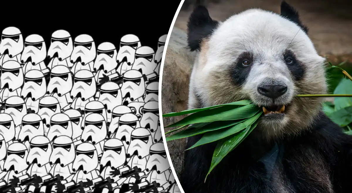 Na obrázku plném černobílých zvířecích vzorů se skrývá jedna panda. Její silueta dokonale splyne s okolím, což je klasická optická iluze testující vaši pozornost a schopnost vidět celek namísto detailů. Klíčem je změnit úhel pohledu.