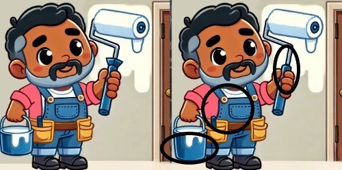 Stojíte před klasickou výzvou „Najdi rozdíly“. Na obou obrázcích vidíte stejnou scénu: muže, který maluje zeď. Vše vypadá naprosto totožně – stejná postava, stejné náčiní, stejné pozadí. Ale není. Mezi těmito dvěma vizuálními dvojčaty se skrývají tři malé, ale zřetelné nesrovnalosti. Vaším úkolem je je odhalit dřív, než vám uteče pouhých patnáct sekund. Takový časový tlak nutí mozek přepnout do režimu ostře zaměřené koncentrace.
