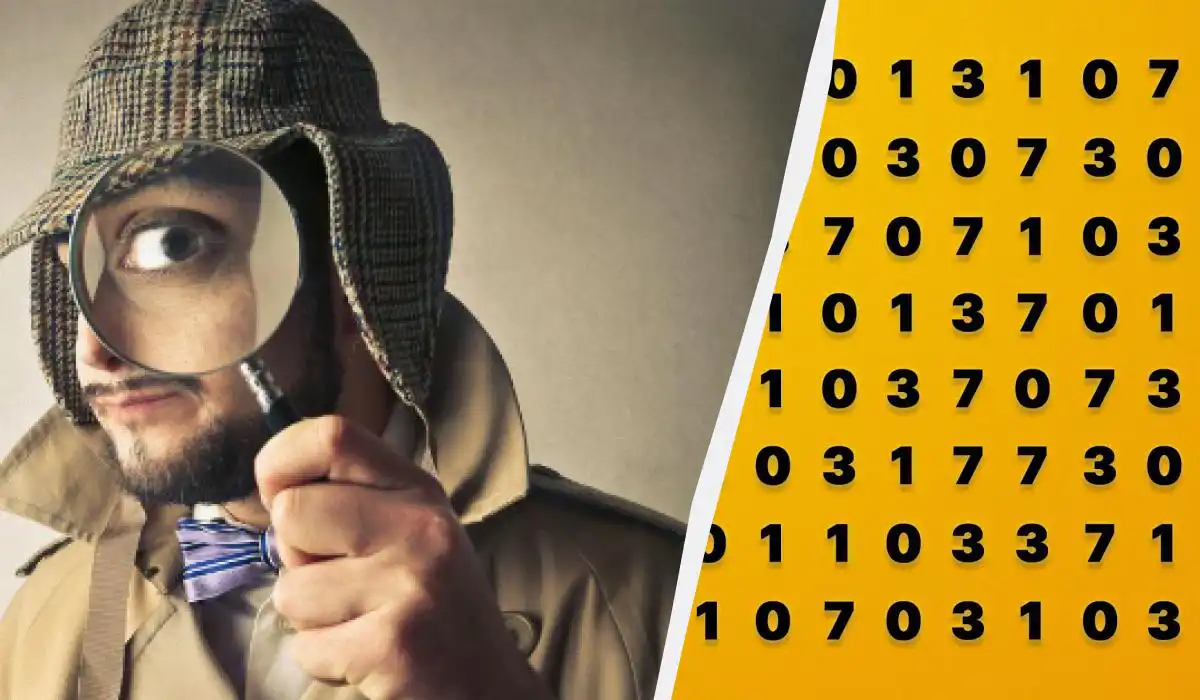 V této vizuální hádance se skrývá trojciferné číslo 371 mezi zdánlivě náhodným shlukem číslic. Vaším úkolem je ho najít za pouhých 6 sekund. Klíčem k úspěchu je periferní vidění a schopnost ignorovat chaos – číslo není uprostřed, ale čeká na okraji.