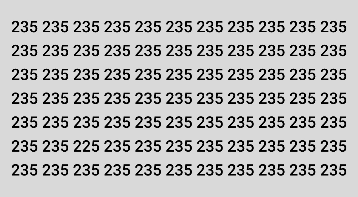 Podívejte se na obrázek níže. Vaším úkolem je najít číslo 225 ukryté mezi čísly 235. Máte na to 8 sekund. Jste připraveni? Začněte!
