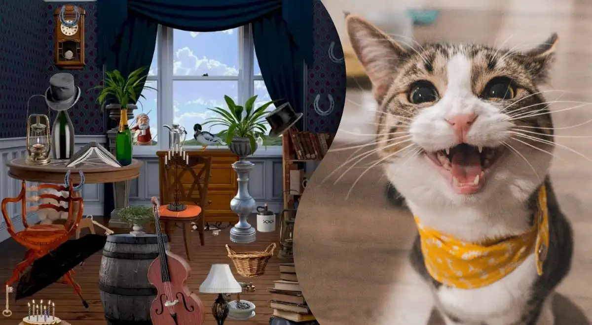 Představte si, že jste pozváni na prohlídku neobyčejného domu sběratele. Místnost je doslova nacpaná od podlahy ke stropu – knihy, hudební nástroje, starožitný nábytek a dokonce i dort. Majitel vám s úsměvem říká: „Mám tu dvě kočky, které se tu někde schovávají. Najdete je obě dřív, než odpočítám do dvanácti?“ Zvuk tikajících hodin se ozývá v pozadí a vy se pouštíte do výzvy. Tento chaos není náhoda; je navržen tak, aby testoval vaši pozornost a odolnost vůči rozptylujícím podnětům.