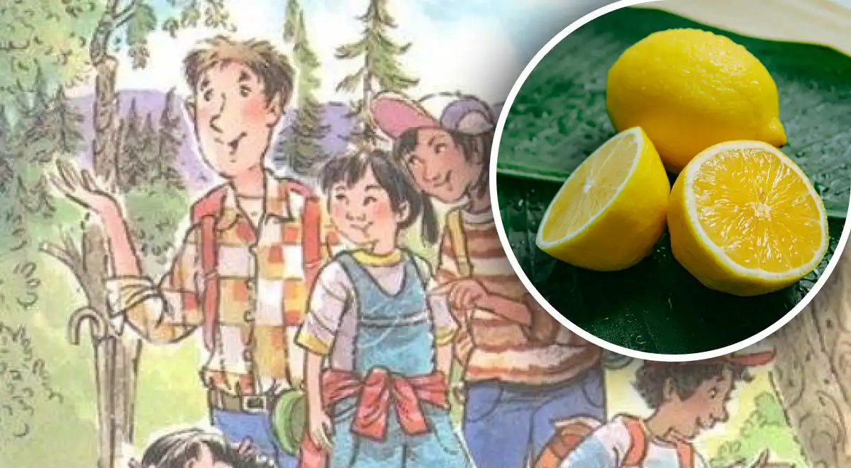 Citron je skutečně chytře ukrytý. Nachází se na kmeni stromu, který je hned vedle postavy chlapce v modrých šortkách (ta postava je druhá zprava). Konkrétně je to na pravé straně toho kmene, ve výšce zhruba jeho pasu. Citron svou žlutou barvou napodobuje světlou kůru nebo lišejník, a proto tak snadno splyne. Když se na to místo soustředíš, najednou žlutá skvrna „vyskočí“ a je zřetelná. Trik těchto hlavolamů často spočívá v očekávání – nečekáme, že by citron mohl růst na kmeni, a proto ho tam mozek automaticky přehlédne.