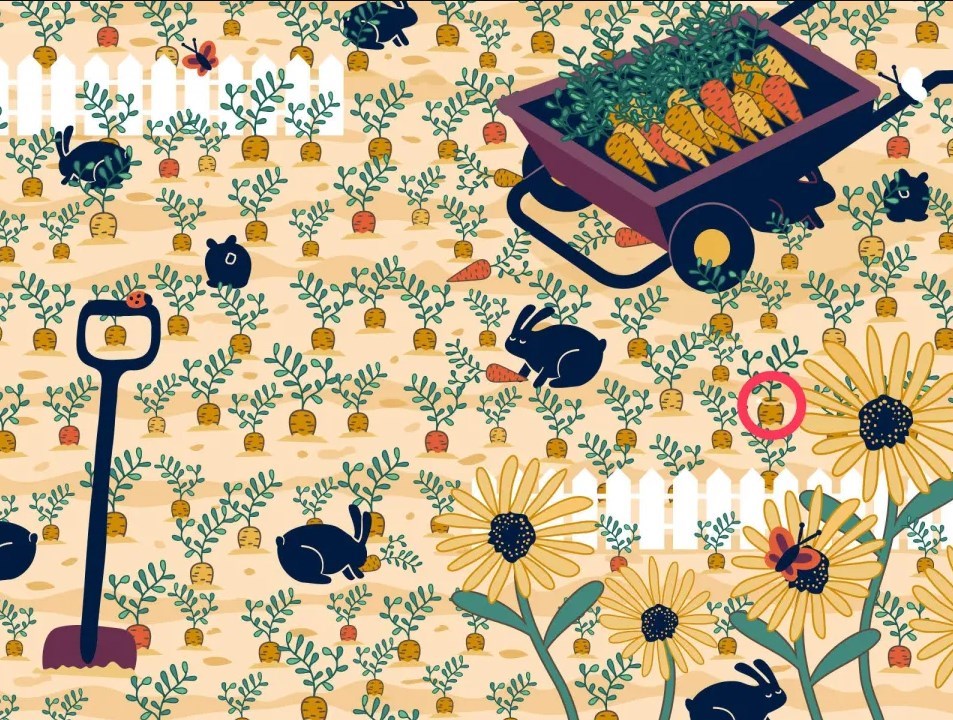Na obrázku plném králíků a mrkve se skrývá diamantový prsten. Klíčem k jeho nalezení není jen rychlost, ale i změna úhlu pohledu a soustředění na detaily, které na první pohled splývají s okolím.