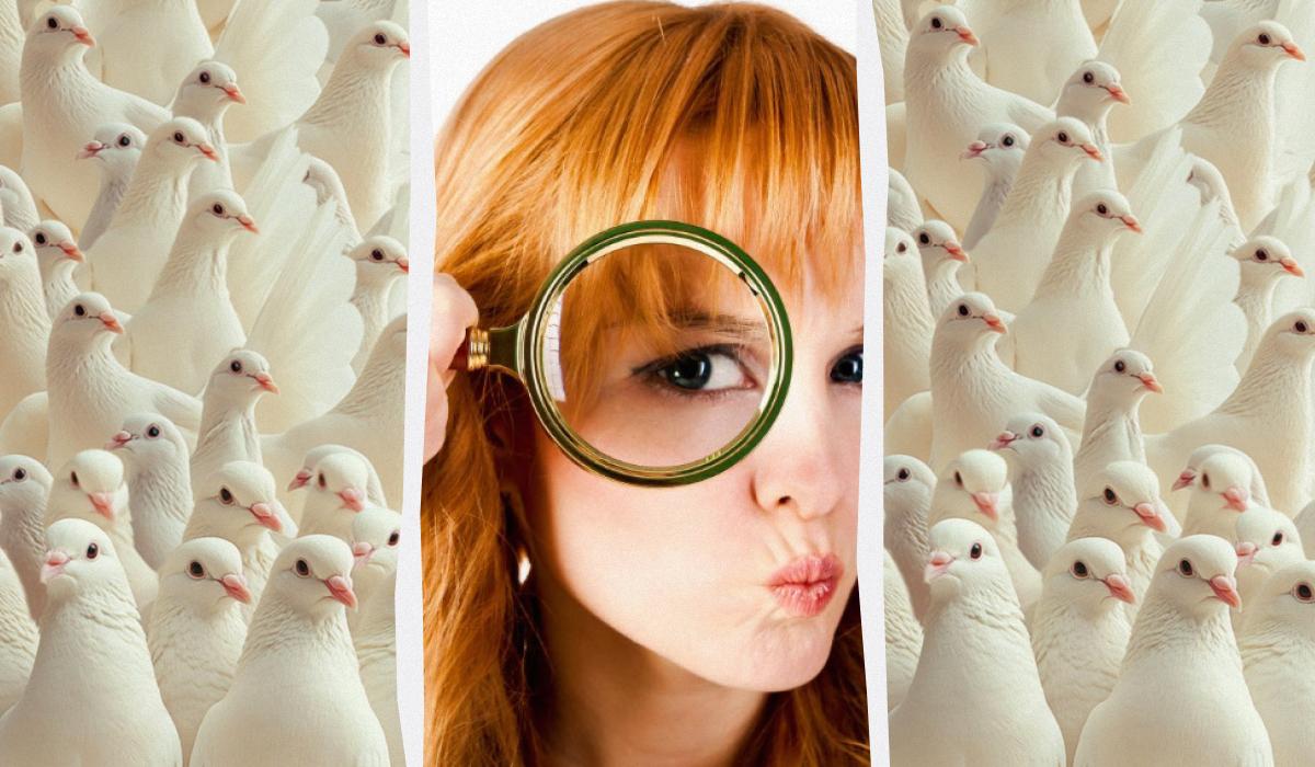 Představte si, že se díváte na obrovské hejno holubic. Všechny jsou bílé, všechny sedí v podobné pozici a všechny se na vás dívají. Váš mozek se snaží tento chaos zorganizovat a seskupuje podobné tvary dohromady. Právě v tom spočívá trik této vizuální hádanky. Pozornost je přirozeně rozptýlena a detail, který hledáte, splývá s okolím.