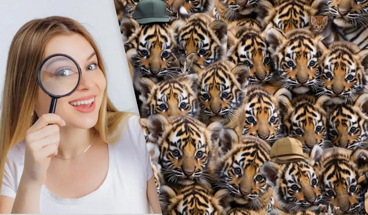 Mezi desítkami tygrů se skrývají tři malá koťata. Jejich podobné zbarvení je dokonale maskuje, ale drobný detail v jejich vzhledu je prozradí. Klíčem je soustředit se na rozdíly v obličejích a velikosti.