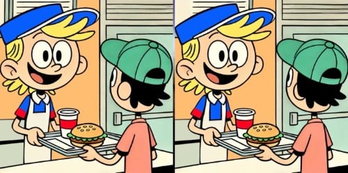 Představte si, že jste kontrolor kvality v reklamní agentuře. Dostali jste dva finální návrhy vizuálu pro kampaně. Klient tvrdí, že jsou stejné, ale vy víte, že v poslední verzi musely být provedeny tři úpravy. Máte na jejich nalezení pouhých 27 sekund, než začne schůzka. Obrázky vypadají naprosto totožně: scéna s pultem rychlého občerstvením, prodavač, hamburger, hranolky a kelímek. Ale něco tu nesedí. Jste připraveni svůj ostrovtip otestovat naostro?