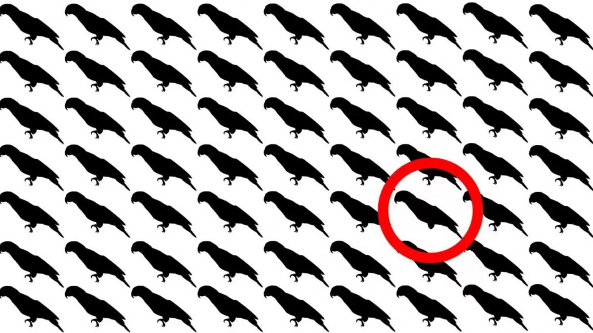 Je čas na řešení. Pokud jste ještě nenašli, podívejte se na následující obrázek. Odlišný papoušek je označen červeným kroužkem.