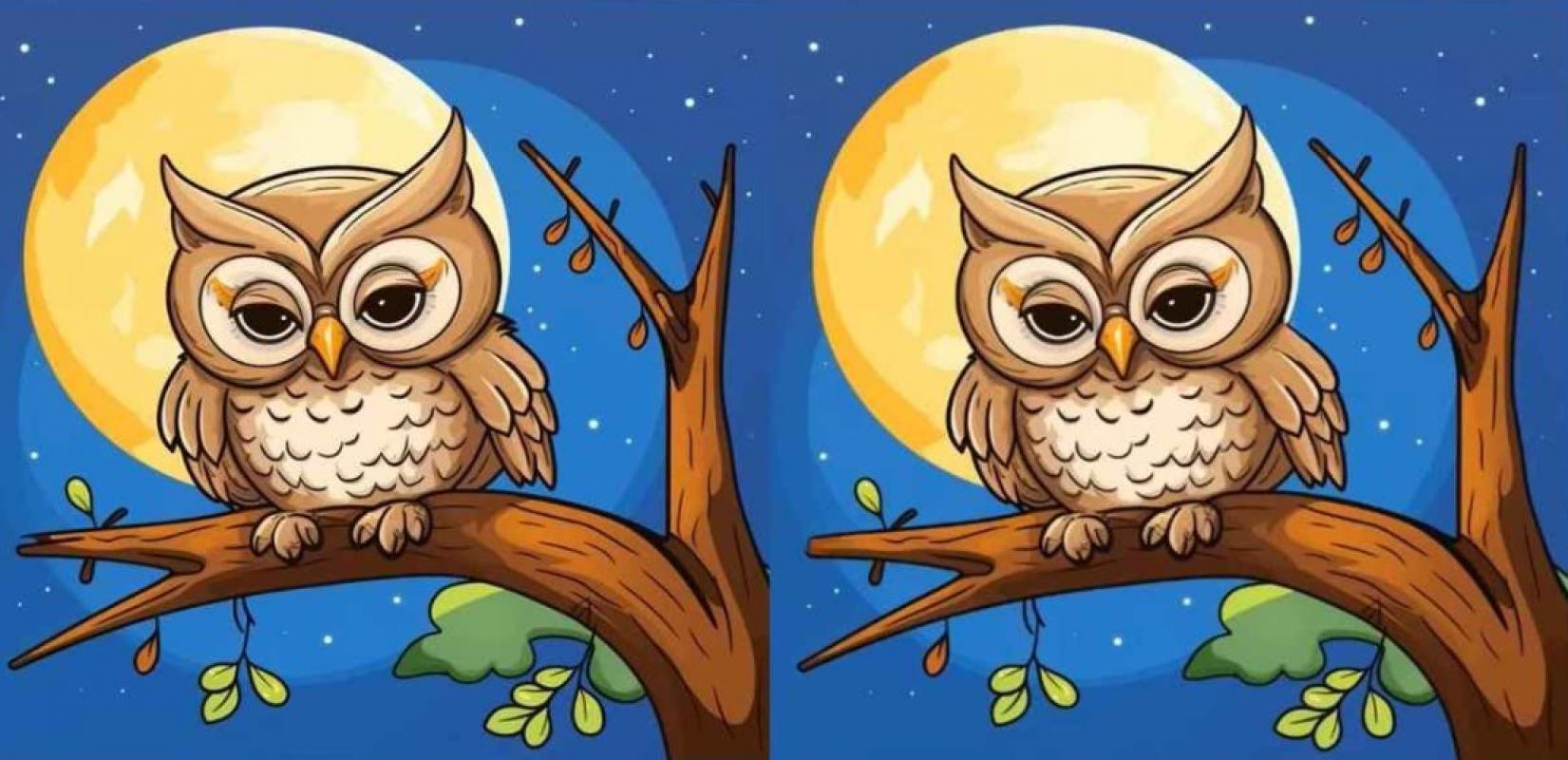 Představte si tichou noční scénu: ospalá sova sedí na větvi pod svitem měsíce. Vypadá to jako dva stejné obrázky, ale není tomu tak. Vaším úkolem je odhalit tři skryté rozdíly, a to vše pod tlakem časového limitu. Tento typ hádanky dokonale testuje vaši pozornost k detailu a schopnost rychlé vizuální analýzy. Jste připraveni otestovat svůj postřeh?