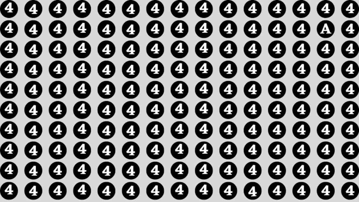 V této optické iluzi se mezi opakujícími se číslicemi „4“ skrývá jedno písmeno „A“. Klíčem k jeho nalezení je změnit způsob, jakým mozek automaticky třídí vizuální informace, a hledat narušení očekávaného vzoru.