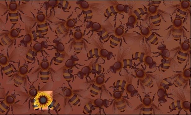 Mezi rojem černožlutých včel se ukrývá jedna slunečnice. Klíčem k jejímu nalezení není rychlé skenování, ale změna perspektivy a hledání odlišného tvaru uprostřed opakujících se vzorů.