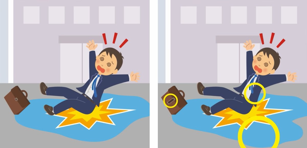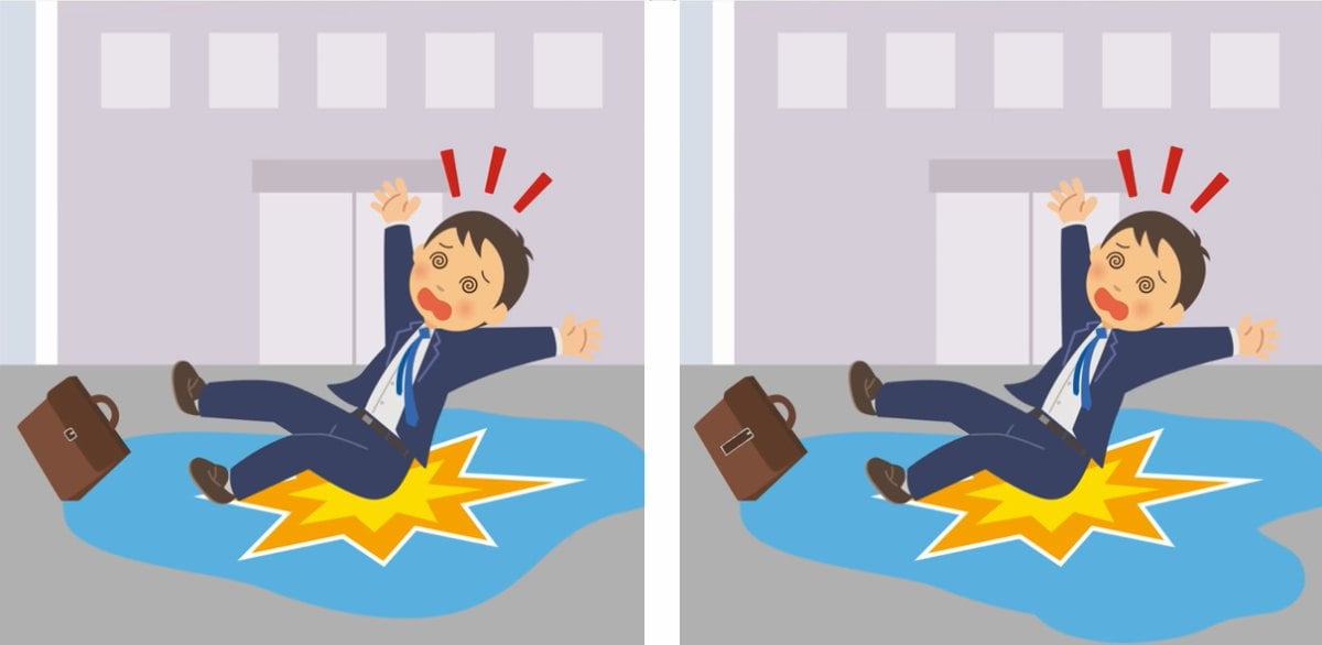 Dva téměř identické obrázky muže, který uklouzl, skrývají tři jemné rozdíly. Vaším úkolem je odhalit je za pouhých 12 sekund. Klíčem je systematické prohledávání, nikoli chaotické koukání.