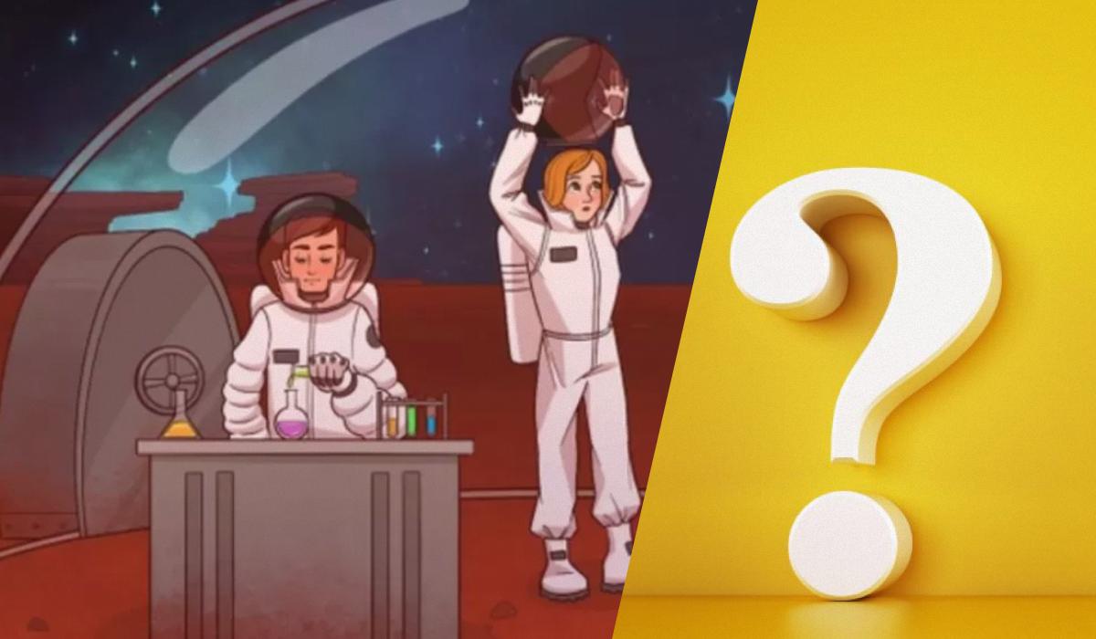 Na obrázku tří astronautů na Marsu je jeden zásadní nesmysl, který odporuje základním fyzikálním zákonům. Pokud ho najdete během sedmi sekund, máte vynikající postřeh a logické myšlení. Klíčem je zaměřit se na prostředí a akce postav.