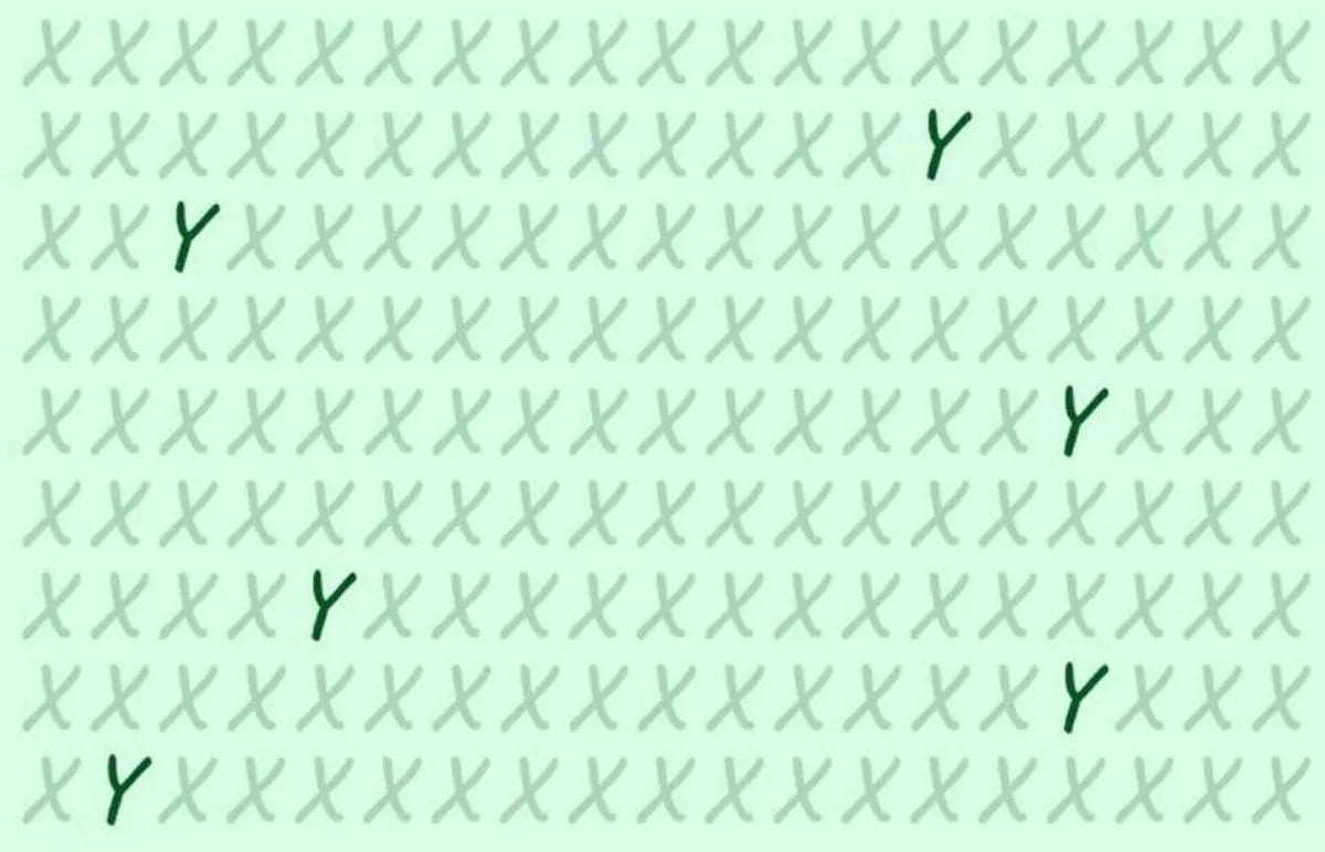 Představte si, že sedíte u počítače a dostanete tuto zdánlivě jednoduchou, ale záludnou úlohu. Obrazovka je zaplněná maticí tvořenou převážně písmeny X. Mezi nimi se však ukrývá šest písmen Y. Tvůrci hádanky tvrdí, že pouze lidé s vysokým IQ to zvládnou za méně než 13 sekund. Je to test vaší pozornosti a schopnosti potlačit očekávaný vzor – mozek má tendenci vidět jen samá X a přehlížet odlišnosti.