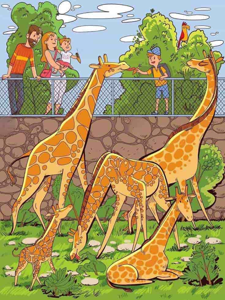 Zkuste to teď. Podívejte se na obrázek a začněte. Nezabředávejte do pozorování žiraf. Místo toho si vizuálně rozdělte obraz na sekce a každou rychle prozkoumejte.