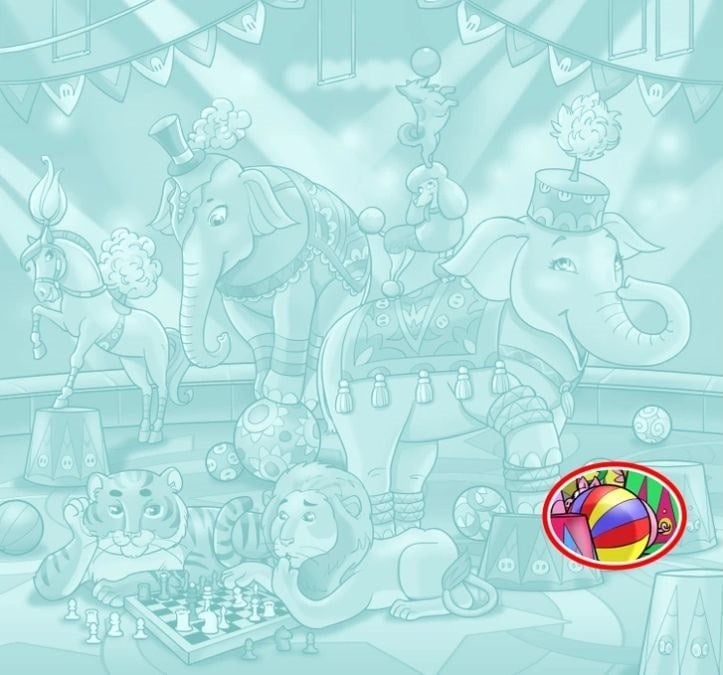 Představte si tu scénu: cirkusový manéž je plný života. Jsou tam sloni, opice, klauni a velké barevné koule. Všechno se točí, blyští a přitahuje pohled. A právě v té záplavě podnětů se jeden chytrý čuník rozhodl, že se stane neviditelným. Tvůrci této optické iluze vsadili na chybu vnímání – náš mozek automaticky třídí, co vidí, a někdy přehlédne to, co nečeká nebo co je součástí většího celku. Vaším úkolem je tento automatický proces přerušit a najít skryté zvíře.
