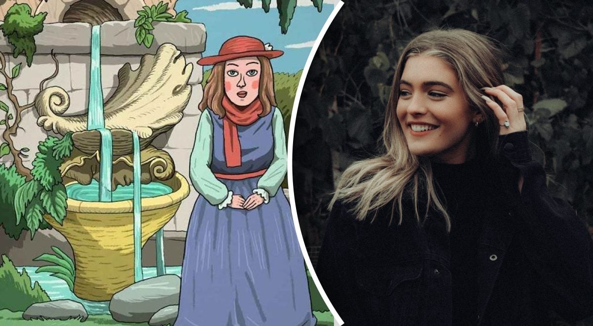 – Zaměřte se na oblast přímo za hlavou dívky. Co tvoří okolní kamennou architekturu?
