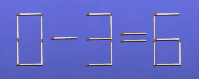 Máte před sebou chybnou rovnici 0-3=6 složenou ze sirek. Vaším úkolem je přesunout právě jednu sirku tak, aby rovnice byla matematicky správná.