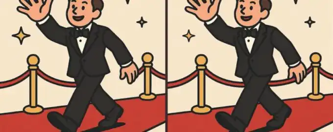 Dokážete najít tři rozdíly mezi dvěma zdánlivě identickými obrázky muže na červeném koberci? Tato klasická vizuální hádanka testuje vaši pozornost k detailu a rychlost.