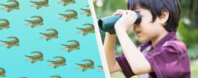 V chaotickém obrazci plném krokodýlů se jeden z nich liší. Klíčem k jeho nalezení není rychlé skenování, ale systematické porovnávání detailů každého zvířete.