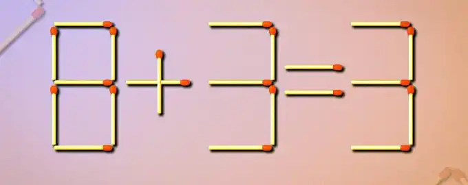 Máte jen 10 vteřin na to, abyste opravili chybu v rovnici založené na zápalkách: 8+3=3. Řešení spočívá v jediném tahu – přesunutí jedné zápalky.