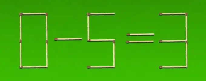 Máte před sebou rovnost 0 – 5 = 3 složenou ze zápalek, která je samozřejmě špatně. Vaším úkolem je přesunout pouze dvě zápalky tak, aby vznikla matematicky správná.