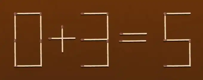 Hlavolam se sirkami, kde je potřeba opravit chybnou rovnici 0+3=5 pouhým presunutím jedné sirky. Klicem k reseni je prestat premyslet o cislech jako o