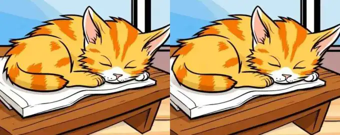 Tato vizuální hádanka vás prověří! Na dvou zdánlivě identických obrázcích spokojené kočky se skrývají tři jemné rozdíly. Vaším úkolem je odhalit je všechny