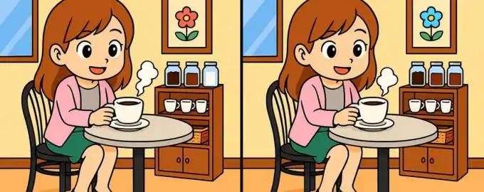 Dokážete najít tři rozdíly mezi dvěma obrázky dívky pijící kávu? Tato klasická vizuální hádanka testuje vaši pozornost k detailu a rychlost.